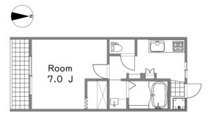 Tactの間取りは反転も含めて3タイプあります。洋室は7帖あり、最初の1人暮らしでは十分な広さです。独立洗面台にウォークイン収納スペース。バストイレ別。またお部屋により少し違いがございます。