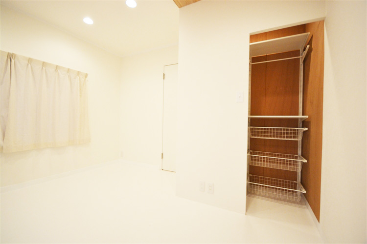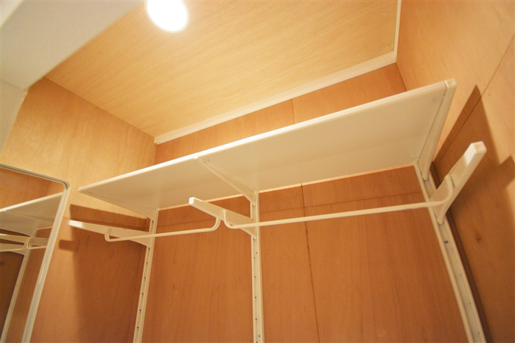 キッチンや洗面所や玄関前など所々に収納にこだわっているのがTactです。そして衣類などをまとめて入れられるこちらはウォークインクローゼットです。IKEA製のシステム収納を採用しており使い勝手の良い収納スペースとなっております。※写真にはないですが、開口部分に目隠し用の布カーテンが設置されます。