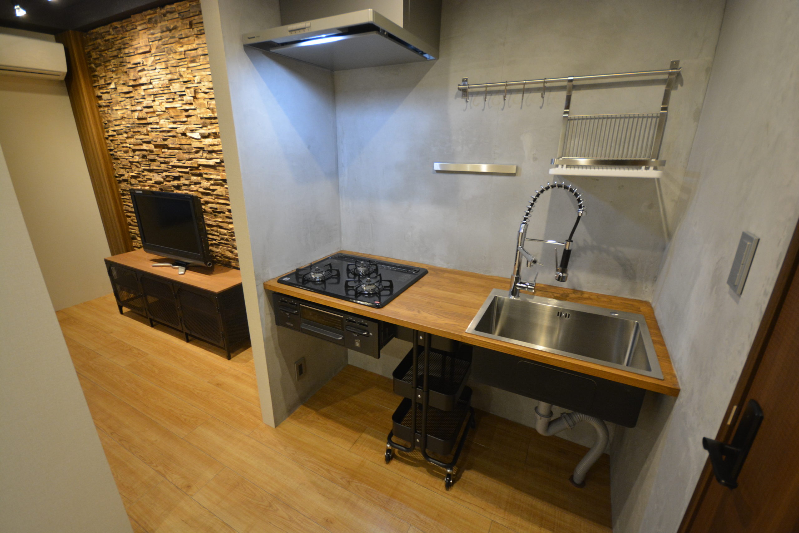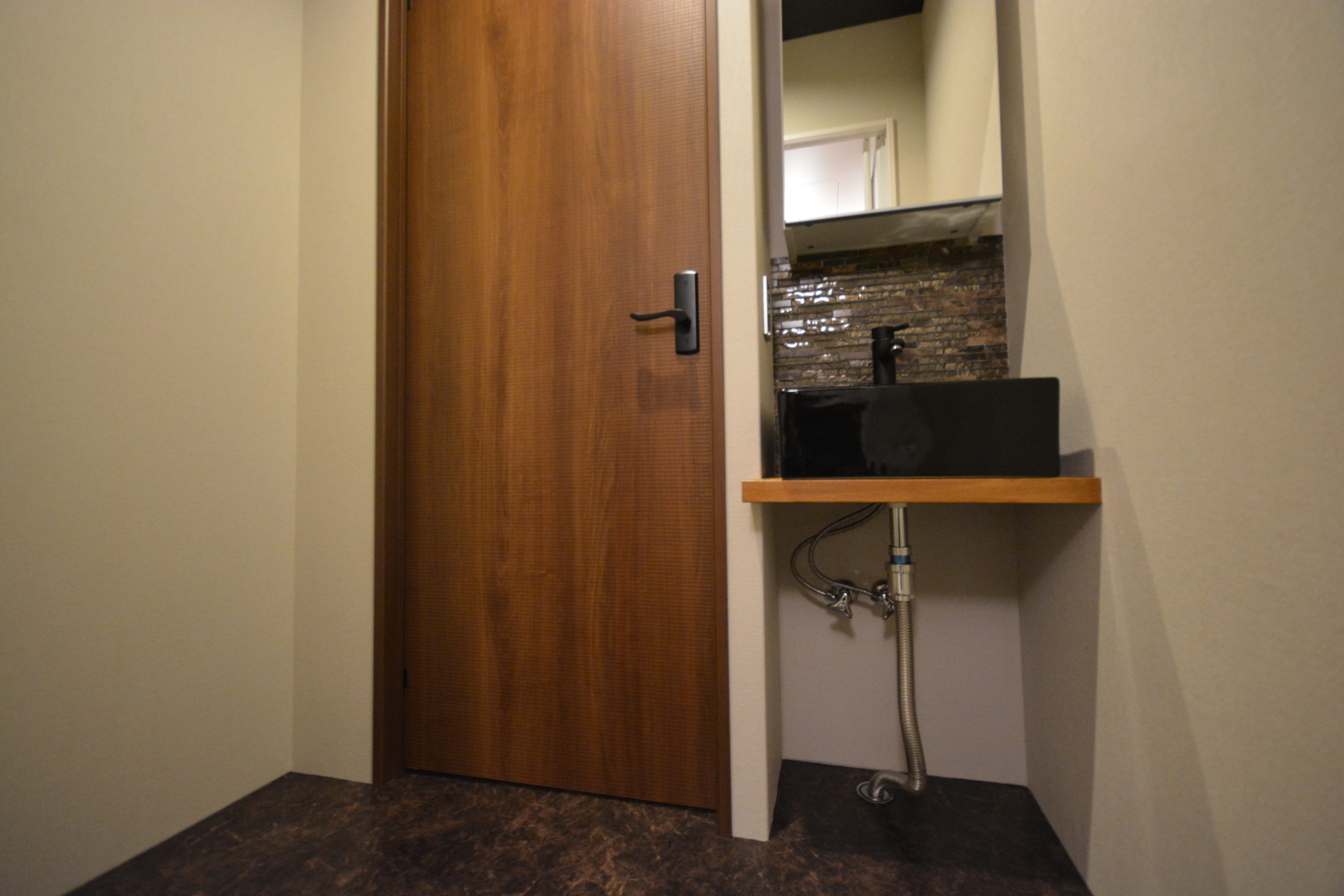 当初は、そのまま1Kの間取りで考えておりましたが、広さを生かし1DKの間取りにリノベーションすることにしました。