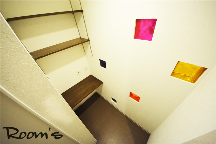 ウォークインクローゼット内の明かりを灯すと、配されたガラスブロックがキラキラと輝き出します。